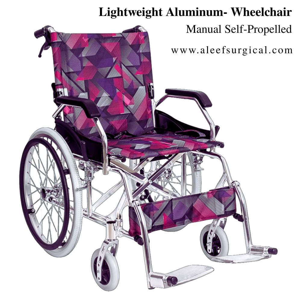 A wheelchair made of aluminum is the lightest wheelchair. It has taken over the world market, and it is now available in Alif Surgical in Bangladesh. Light, easy to fold, rust resistant, colorful, and the seat cover is water resistant.
