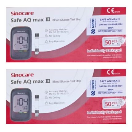 Get accurate blood sugar readings at home with the Sinocare Safe AQ Max III Glucometer. Features a smart colour indicator and no coding. Available at Aleef Surgical.